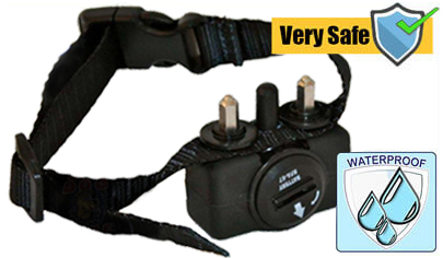 The PetSafe Ultrasonic Bark Control Collar Uses annoying ultrasonic sounds that only dogs can hear. Its sound activated and water-resistant. It is not recommended for more determined and larger dogs that tend to require a stronger solution for nuisance barking. This ultrasonic bark collar uses a safe ultrasonic sound to distract or deter a dog from barking. The sound is inaudible to humans but is annoying to a dog which teaches them that barking isn’t fun to do for no reason.